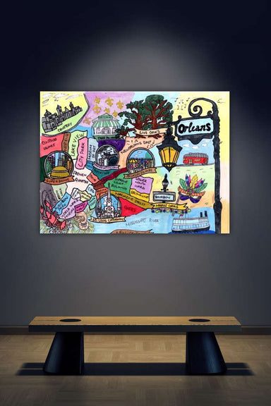 This vibrant illustrated map brings New Orleans to life through color, symbolism, and story. From St. Louis Cathedral and Jackson Square to Café du...