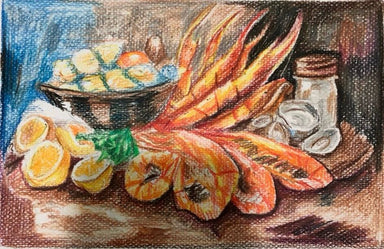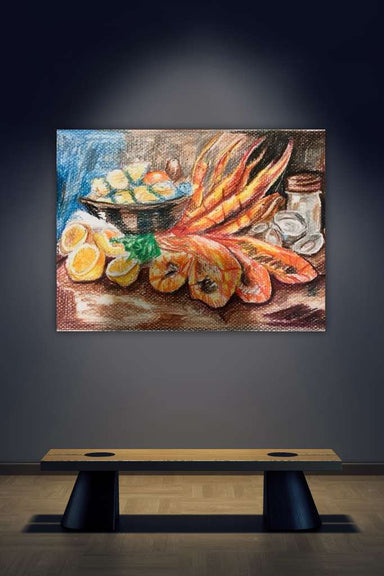 This vibrant still life celebrates the heart of Louisiana flavor, capturing a classic seafood boil mid-feast. Plump shrimp, sliced lemons, and seas...