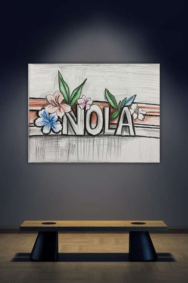 This piece blends bold lettering with soft floral elements to celebrate the spirit of New Orleans. Framed by delicate blossoms and flowing lines, t...