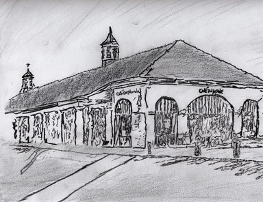 This graphite sketch captures the timeless charm of Café du Monde, standing quietly before the crowds arrive. Soft shading and loose lines give the...