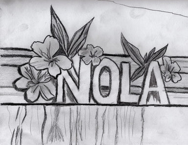 This soft graphite sketch blends the bold identity of New Orleans with the gentleness of nature. The strong “NOLA” lettering stands grounded like a...