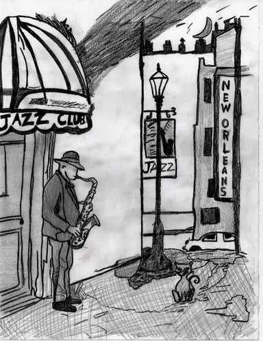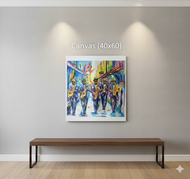 This artwork bursts with the soul of New Orleans, capturing a lively brass band marching through the streets, their horns echoing the heartbeat of ...