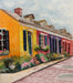 A proud little row of Bywater/Marigny shotgun houses painted in pure Carnival colors: tangerine orange, hot magenta, and royal purple. Navy shutters pop open like they’re ready for the next second-line, while flowers tumble over the steps. Joyful, unapologetic, and 100% New Orleans; this is the soul of the city in three bright doors.