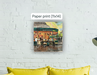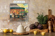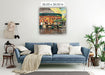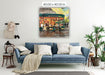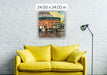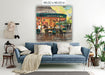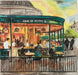 This artwork captures the lively and iconic Café du Monde in New Orleans, known worldwide for its beignets and café au lait. The warm orange and yellow tones from the interior lighting contrast beautifully with the cool greens and blues of the building and evening sky, creating a welcoming glow that draws people in. The scene highlights both the bustling energy inside the café and the quieter moments of people seated outside, enjoying the atmosphere. It reflects not just a place to eat, but a cultural landmark — a gathering spot that embodies the charm and rhythm of New Orleans life.